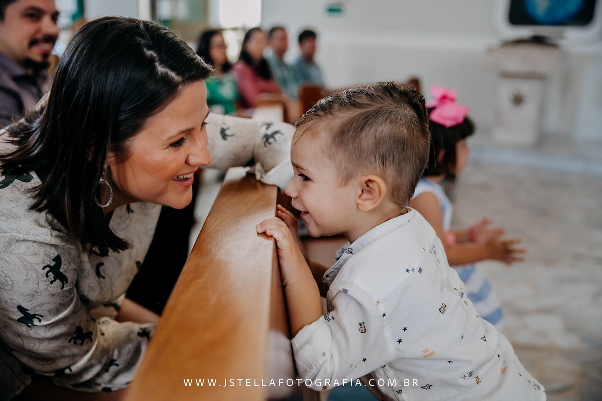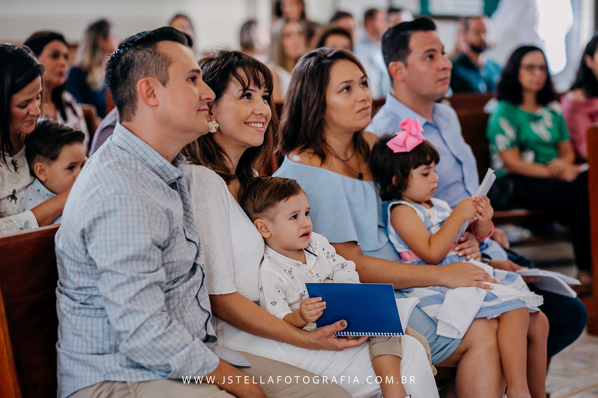 O batismo foi na Paróquia Nossa Senhora Consolata, em Santana. Daquelas cerimônias bem pequenininhas, só para a família mesmo e, depois a recepção foi no salão do prédio onde os pequenos moram.