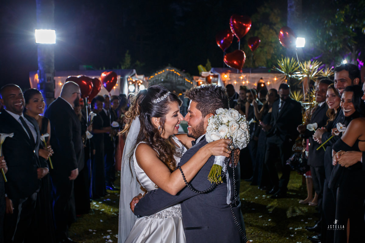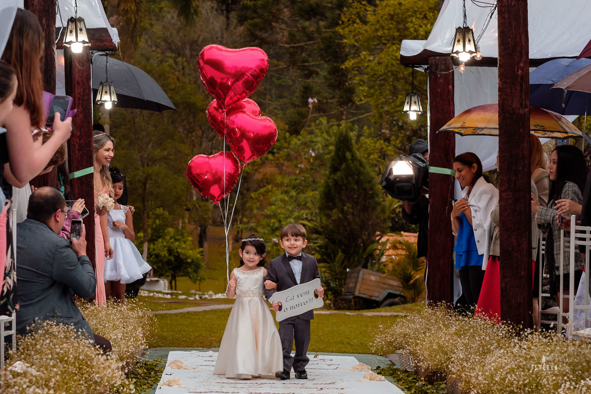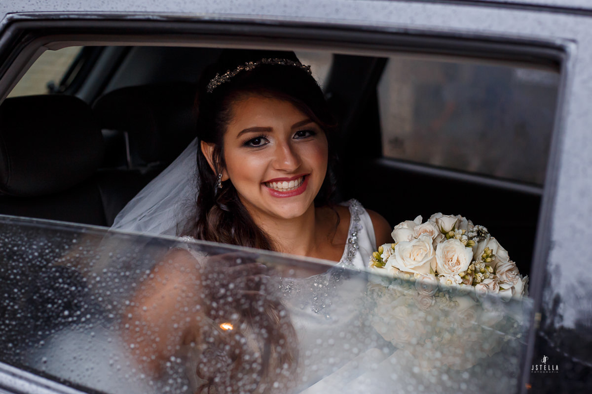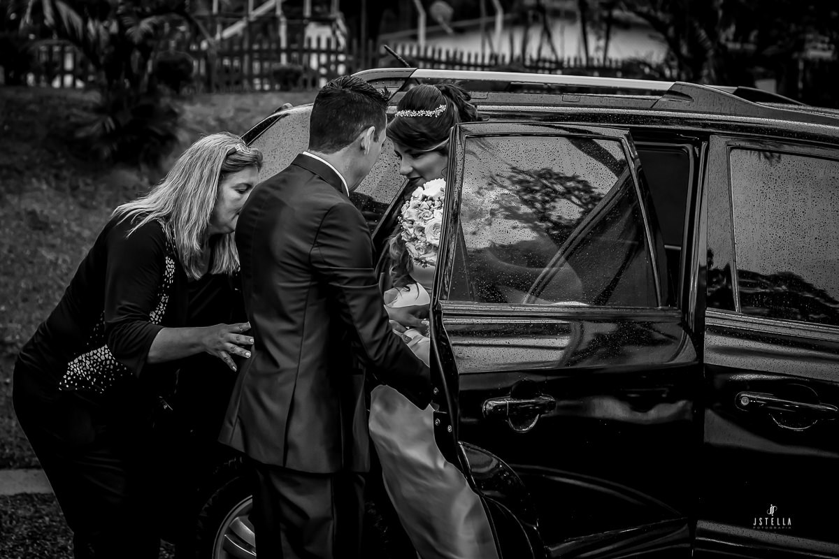 Nossa equipe chegou embaixo de garoa forte e, no espaço e não tinha como não ficar apreensivo, pois estava chegando a hora da cerimônia e a chuva não havia dado trégua, foi onde a Keila me falou que se a chuva não parasse tudo bem, mesmo que os convidados ficassem no espaço da festa onde havia cobertura, ele, os noivos, iriam entrar sobre o tempo que tivesse, com chuva ou sem chuva!