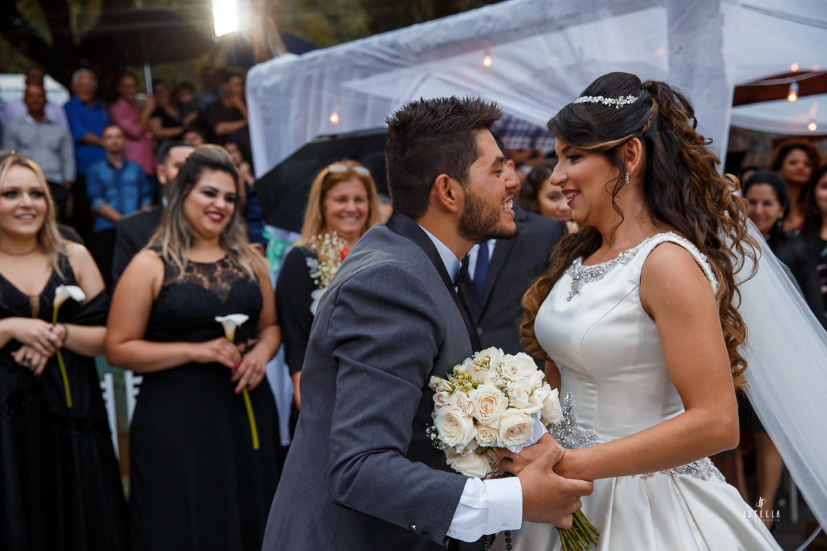 Inexplicavelmente quando a Keila ficou pronta e não tinha mais como esperar para o início da cerimônia, a chuva passou, os convidados se animaram e desceram para o local da cerimônia e, posso dizer que tudo foi perfeito! Lindo de ver a felicidade do casal, dos padrinhos e convidados.