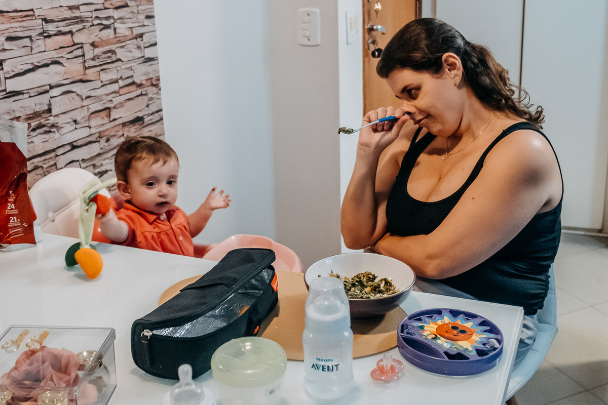 Cheguei na casa da Joyce e do Ben por volta das 7h, a Maia tinha acabado de acordar, e saímos para tomar café numa padaria próximo a casa da família, que já faz parte da rotina deles.