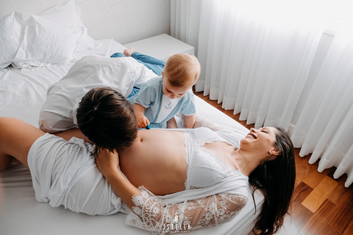 O foi um ensaio divertidissimo! Nós gostamos muito da ideia do ensaio feito em casa, é bem aconchegante, fica muito natural e principalmente ajuda as mamães que estão na reta final da gestação.