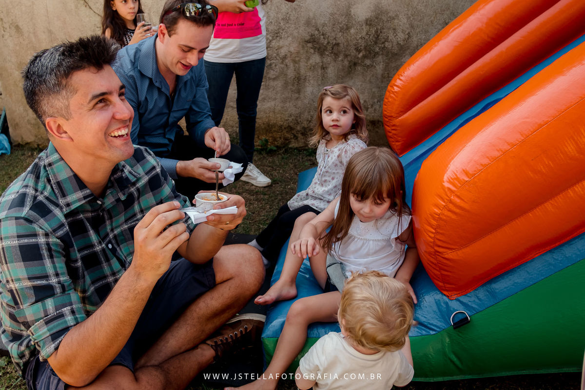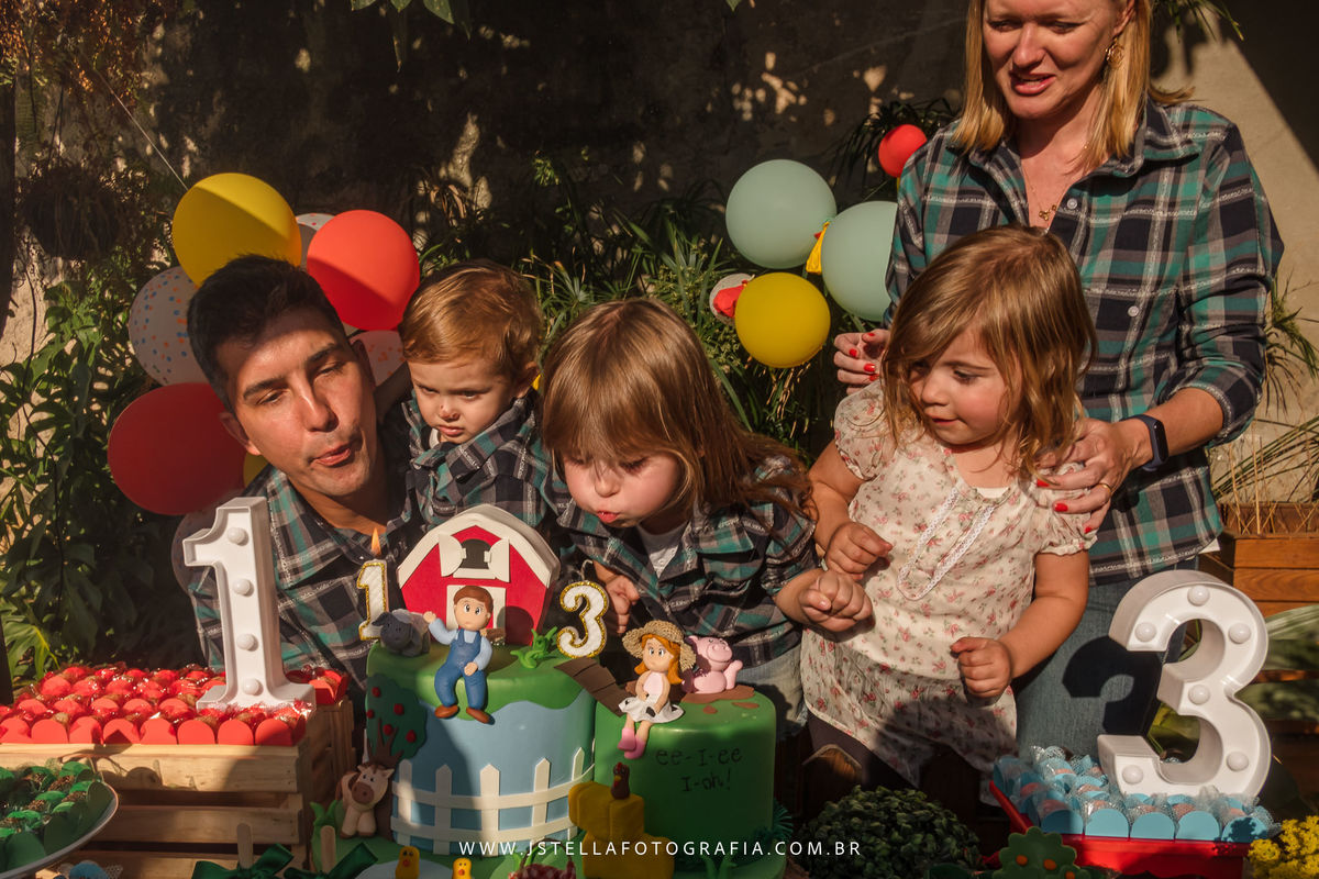 O dia estava lindo, um sol incrível, e o tema da festa, foi fazendinha. Tudo lindo e cuidado com muito carinho pela família, que coloca a mão na massa e cuida de tudo!
