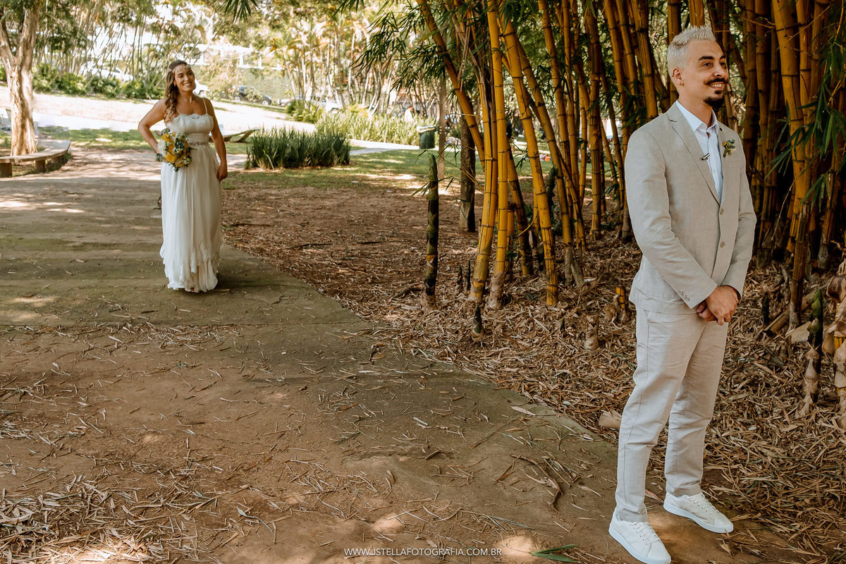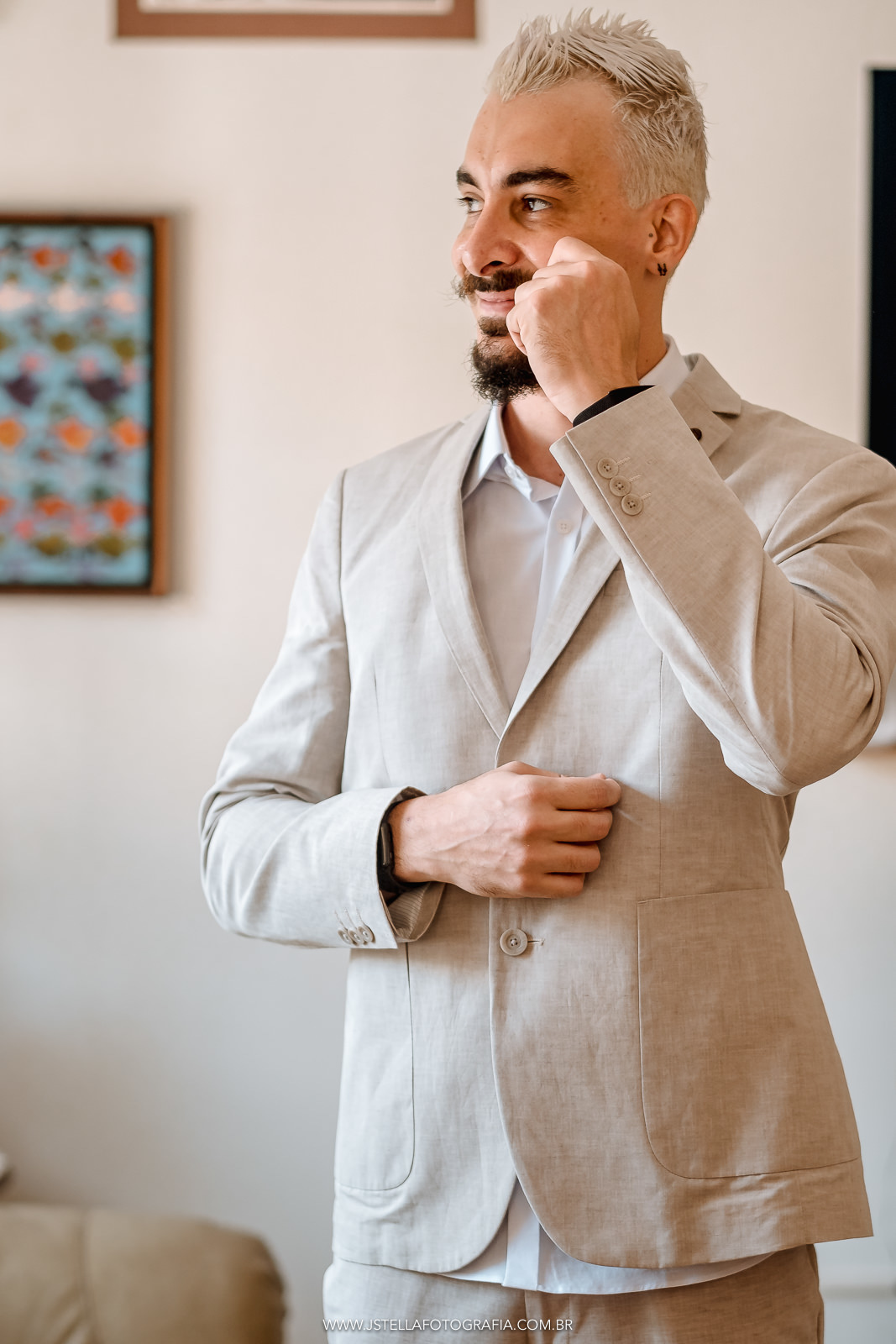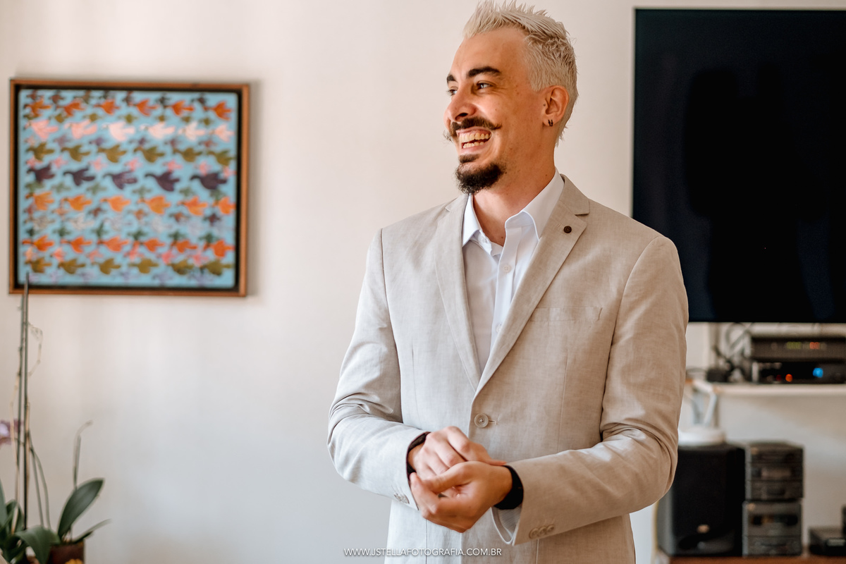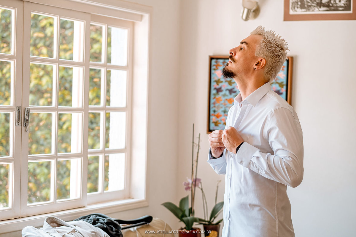 Pois bem o making of em casa e, antes de ir para o cartório rolou um first look, que é quando os noivos escolhem se ver pela primeira vez antes da cerimônia de casamento.