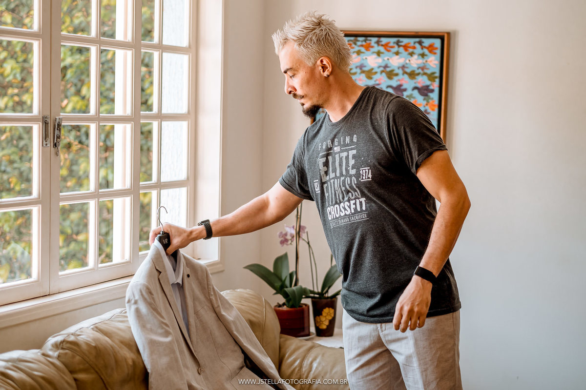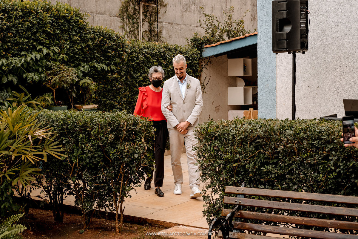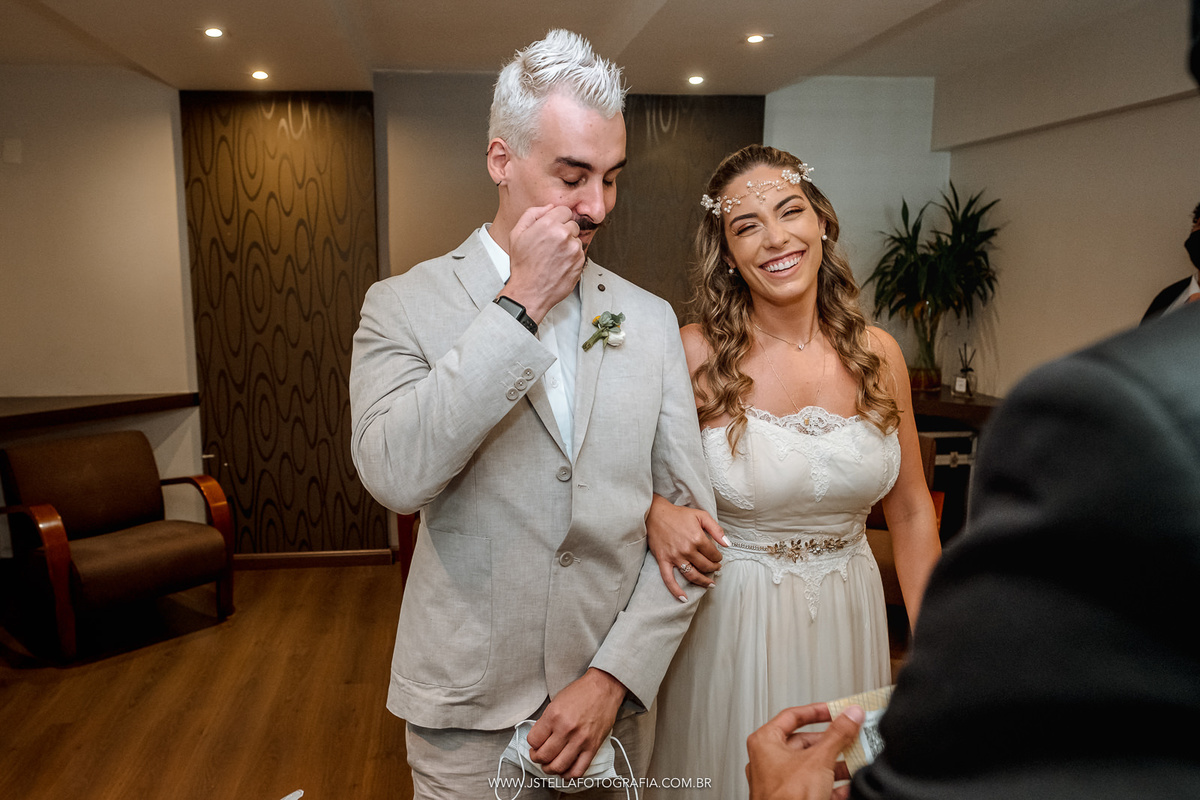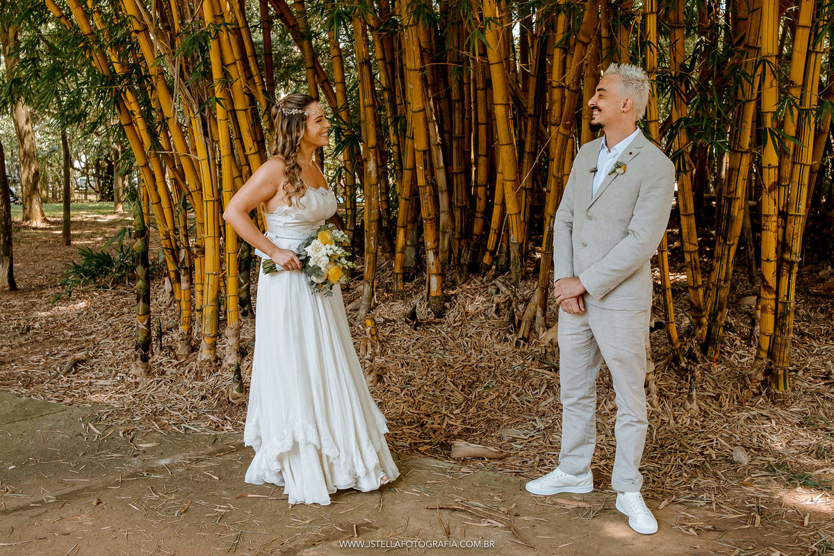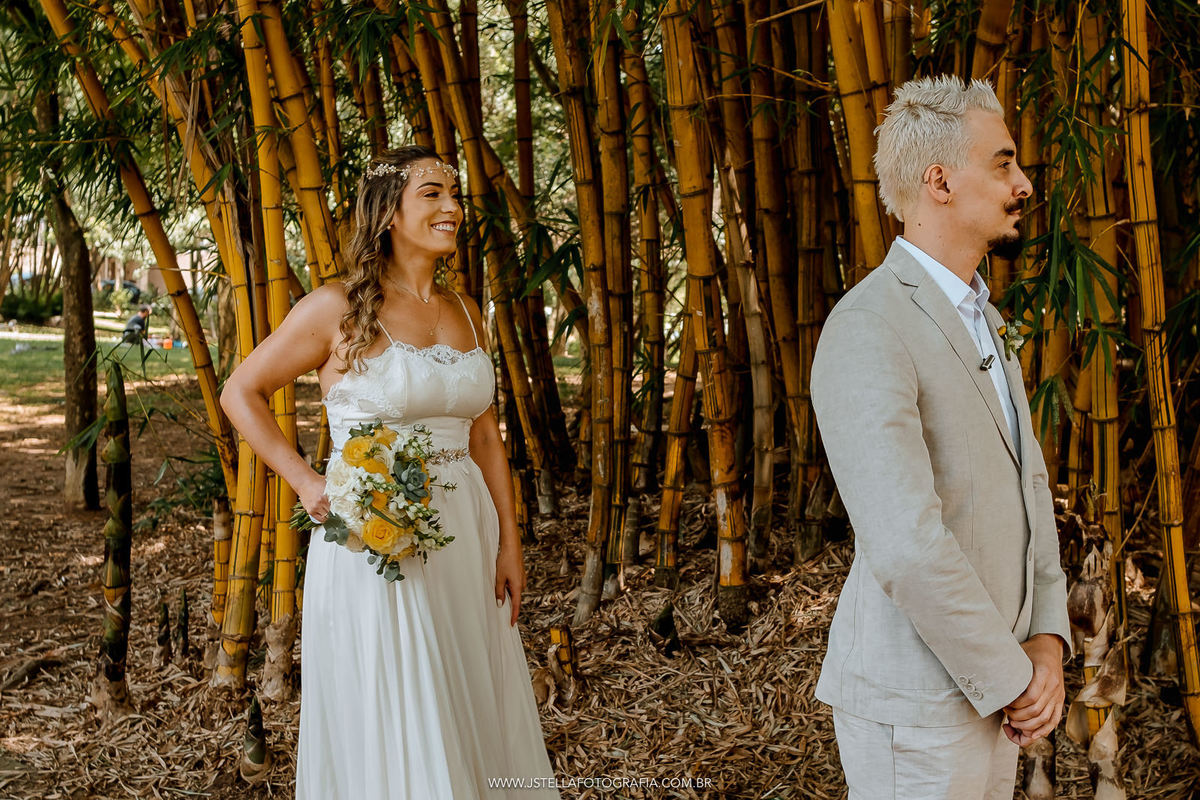 Pois bem o making of em casa e, antes de ir para o cartório rolou um first look, que é quando os noivos escolhem se ver pela primeira vez antes da cerimônia de casamento.