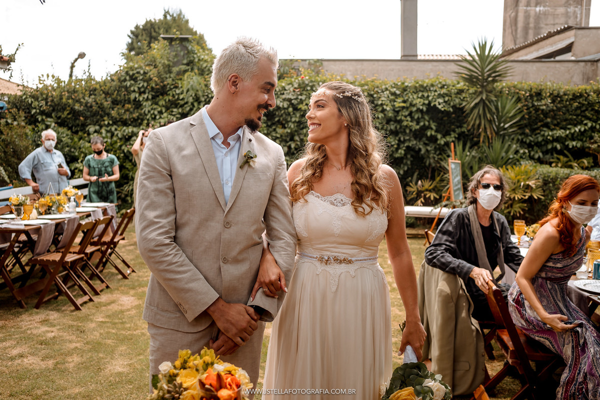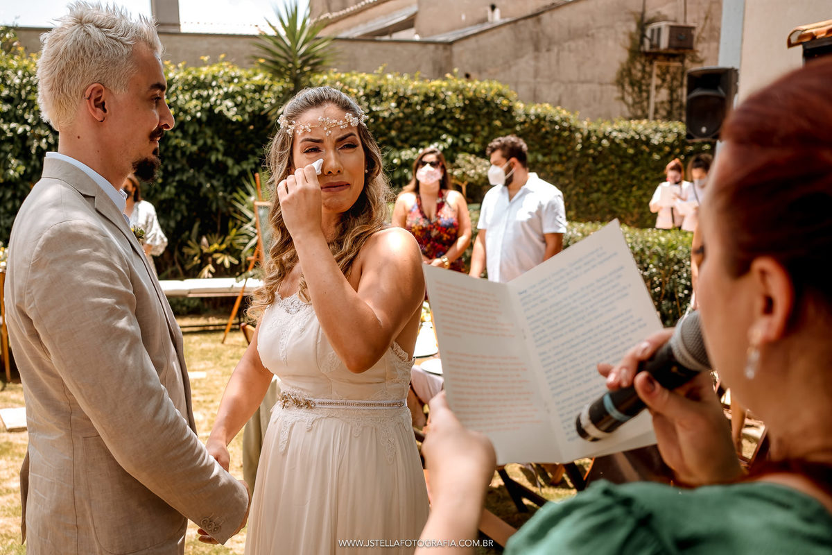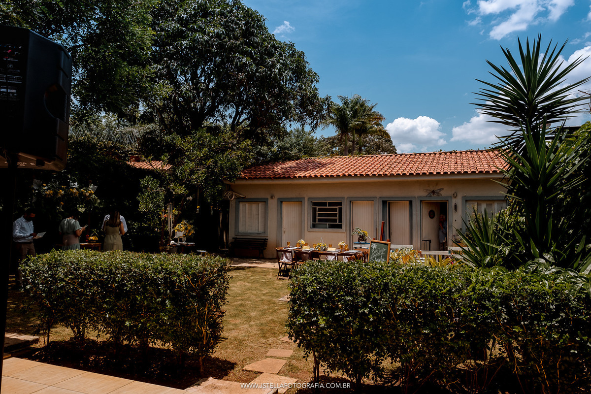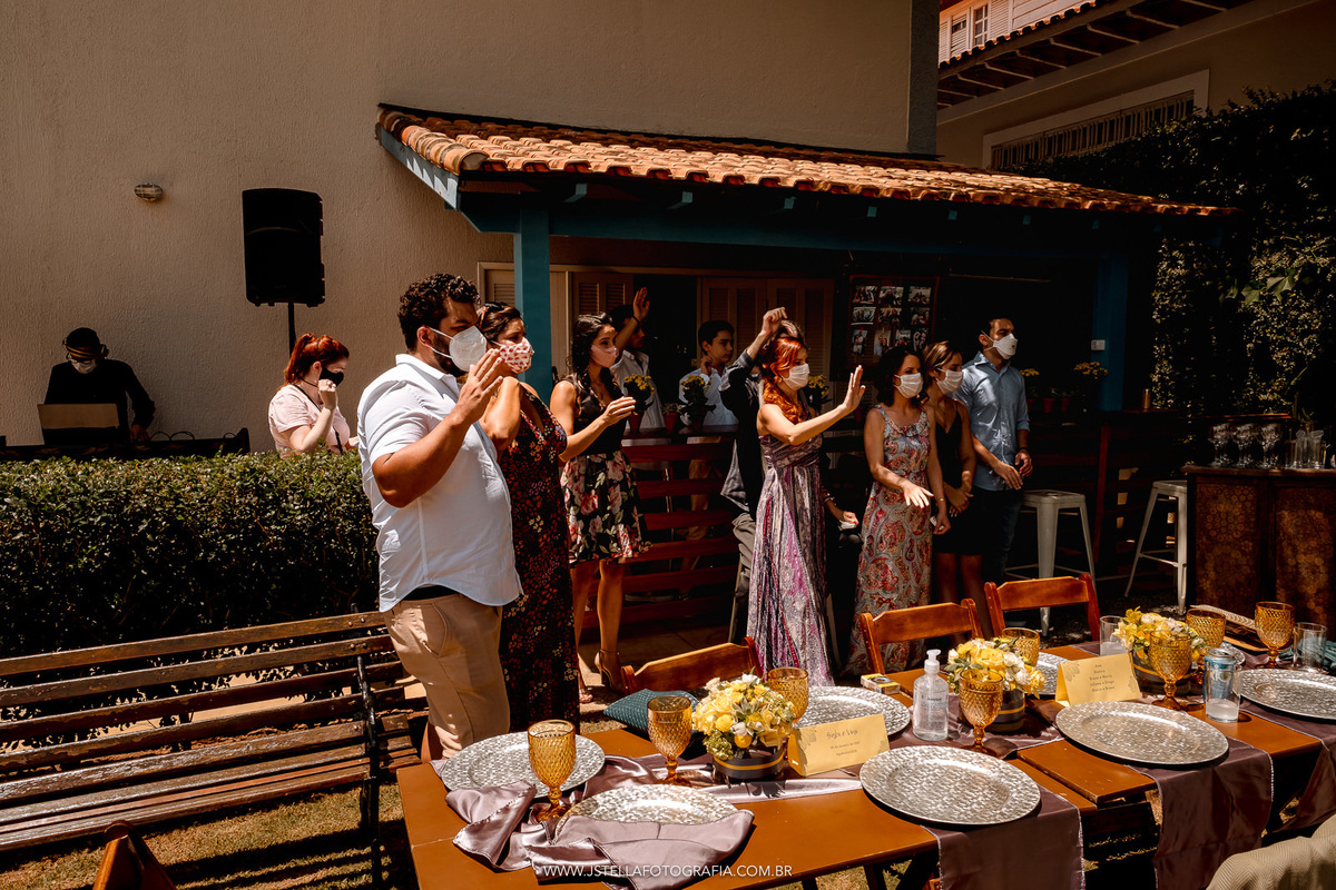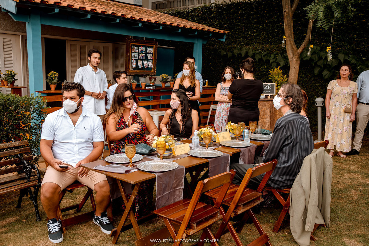 Logo no início da conversa ela já me disse "Jú, o casamento vai ser aqui em casa, vai ser uma cerimônia intimista no jardim de casa, meus pais sugeriram isso e a gente topou, por conta da pandemia vamos receber somente amigos e parentes mais próximos."