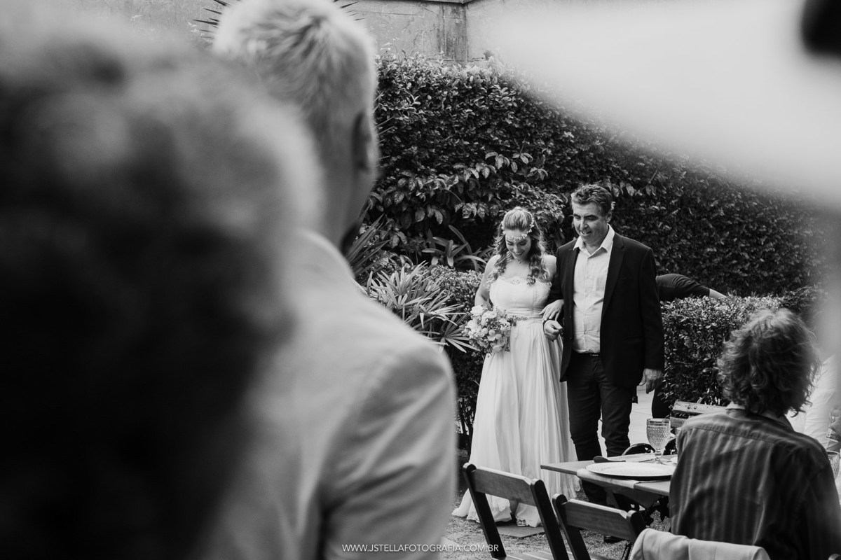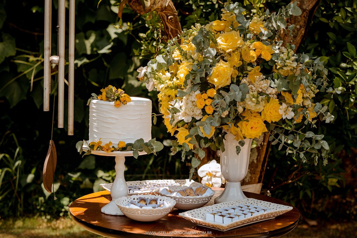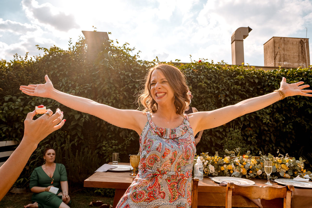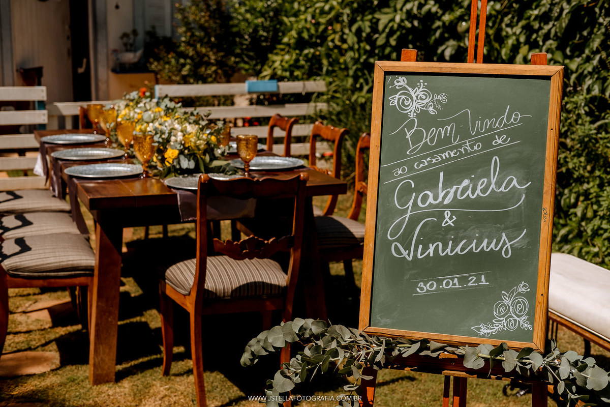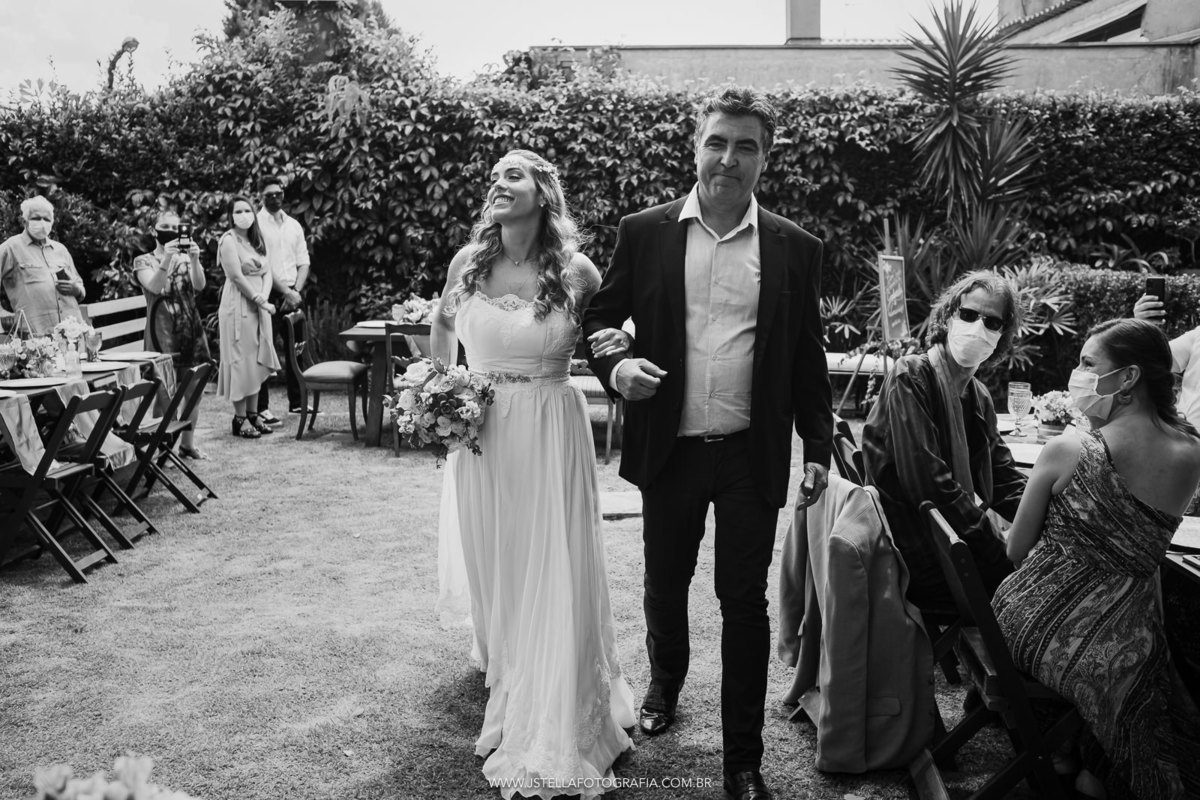 Logo no início da conversa ela já me disse "Jú, o casamento vai ser aqui em casa, vai ser uma cerimônia intimista no jardim de casa, meus pais sugeriram isso e a gente topou, por conta da pandemia vamos receber somente amigos e parentes mais próximos."